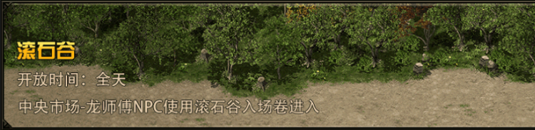 进入条件:需携带滚石谷入场券开放时间:全天物品掉落:药品、绝世功法