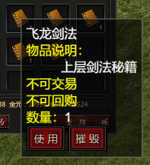 例如:我想要学习飞龙剑法,我需要将一层武学闪光剑破解练习到满级,自身浩然气达到60.01点的情况下,并获得飞龙剑法秘籍书才能学习。